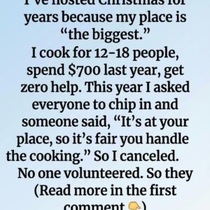 I’ve hosted Christmas for years because my place is “the biggest.” Every year, without fail, it somehow became my responsibility. I cook for 12 to 18 people. I…